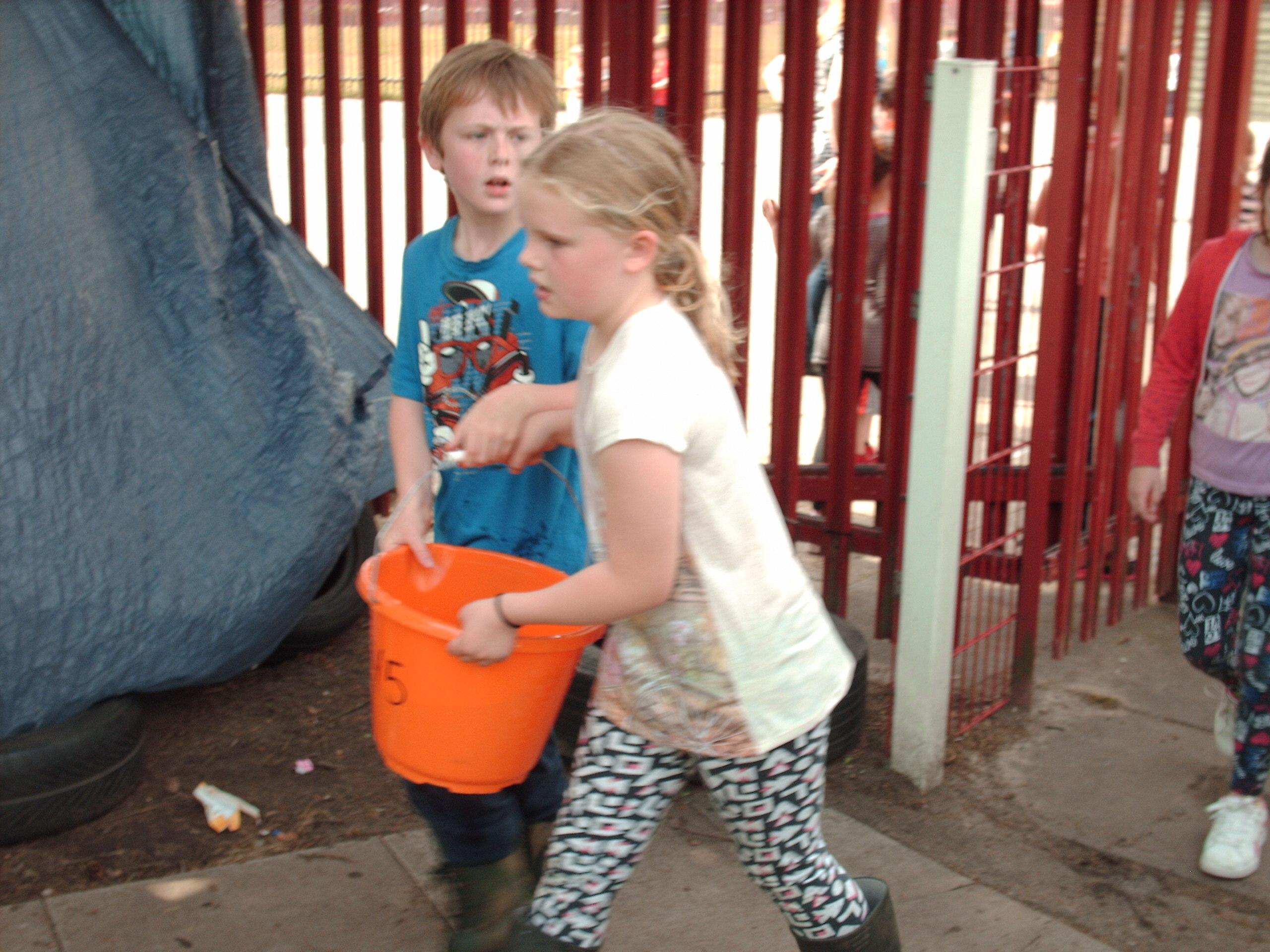 Year 5 organised a water walk in houses and we all tried experiencing what it is like to carry buckets of water over long distances.