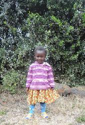Peris is 4 years old and lives just outside Nairobi city in Kenya. She enjoys playing with her friends and going to Sunday School.