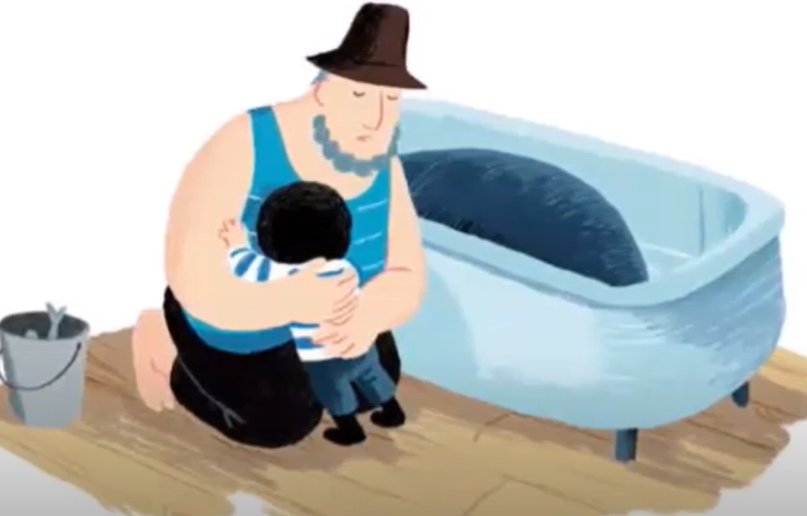 Look at the picture below and write a diary entry as Noi's dad. Think about how he feels bad for Noi, and feels guilty that he has not had anyone to talk to whilst he is out at work.