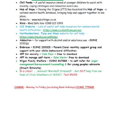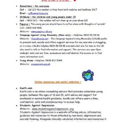 Please read some useful information on 'Who to call if in crisis'.